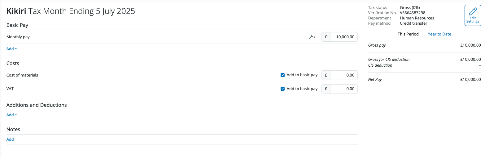 • ABC Contractors pays Kikiri the net amount of £10,000.