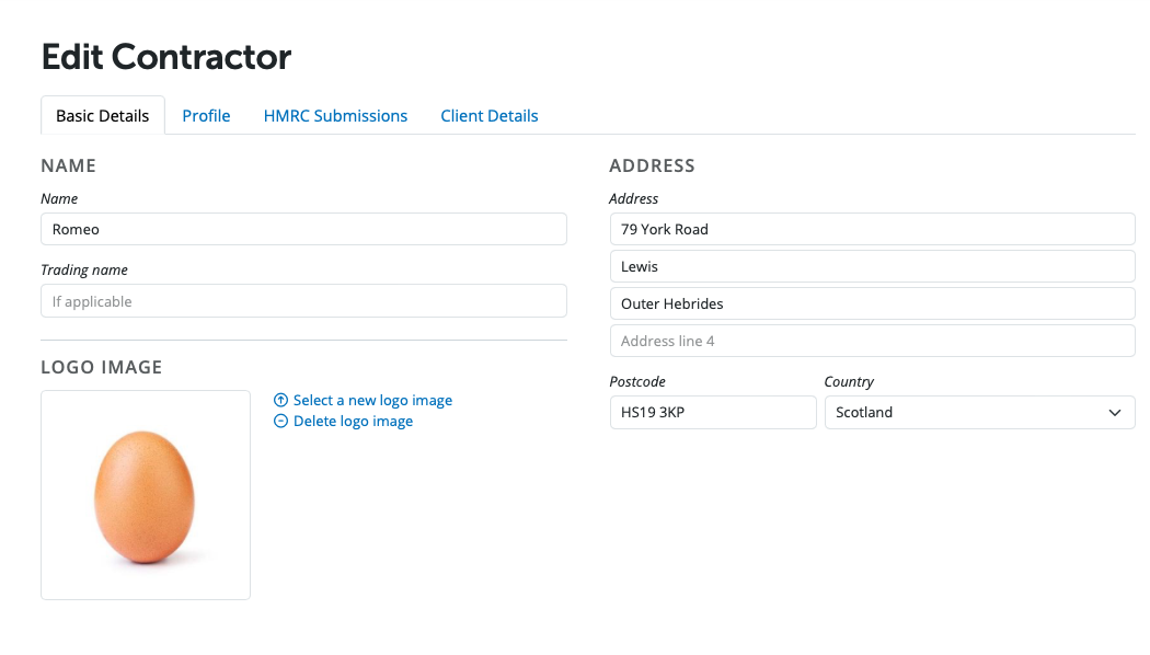 The Contractor details used in CIS submissions to HMRC are name, Unique Tax Reference and Accounts Office Reference.