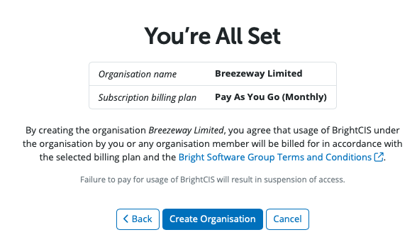 Here is a link to a video tutorial on how to set up an Organisation in BrightCIS - Setting up your Organisation in BrightCIS.