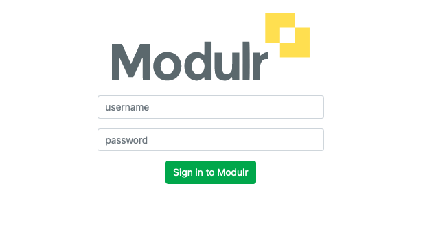 3) Next, enter your Modulr username and password in the fields provided, followed by 'Sign in to Modulr':