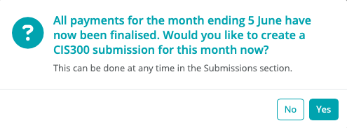 4) When all payments for the tax month have been finalised, BrightCIS will offer to create a CIS300 monthly return for submitting to HMRC.