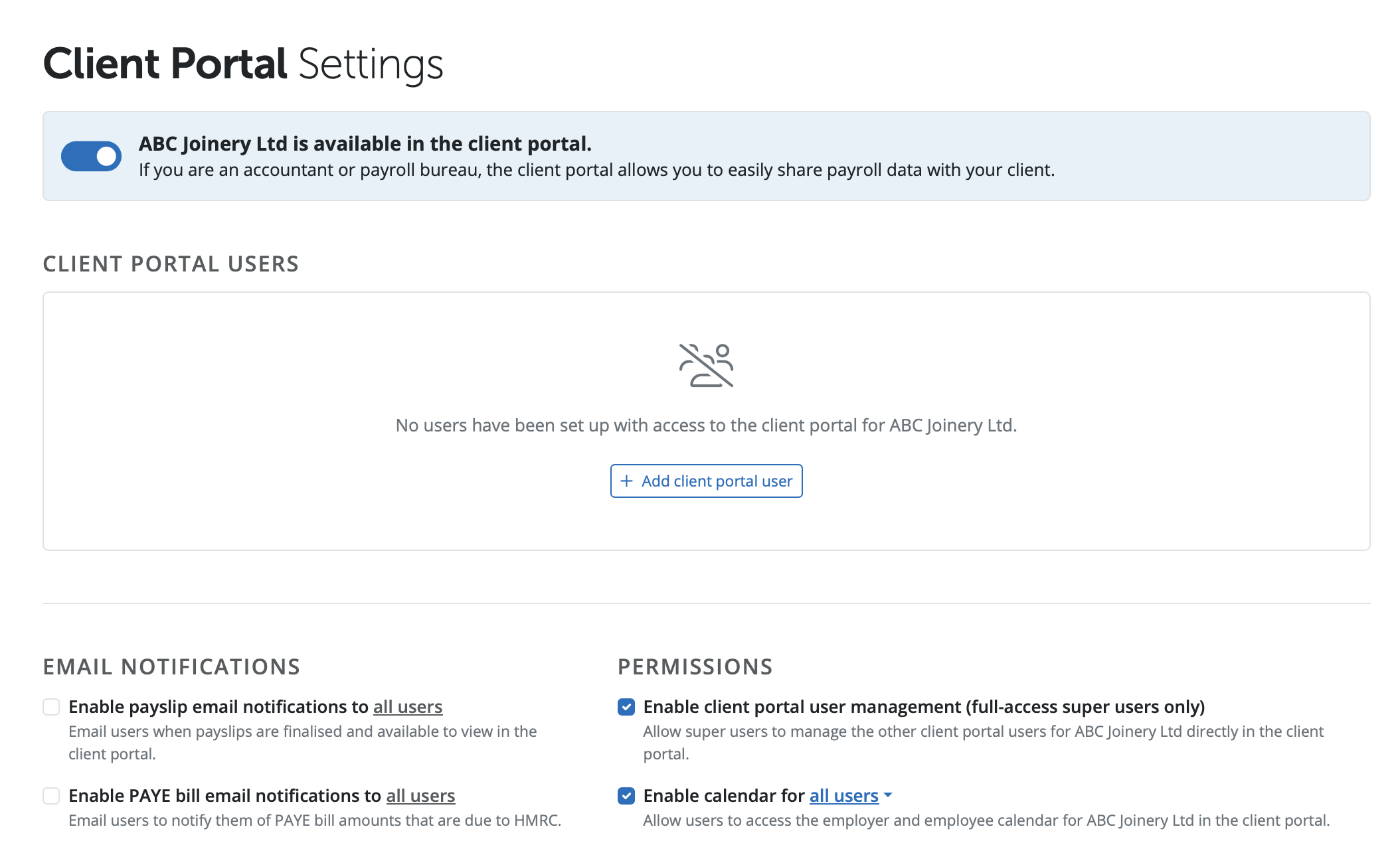 Depending on your business, you may need multiple Users. If you are an accountant, bookkeeper or payroll bureau who manages payroll for multiple clients, you may wish to add your colleagues as Super Users, and add a contact (e.g. the business owner) from each of your customers as a Standard User to give them access to their own payroll data.