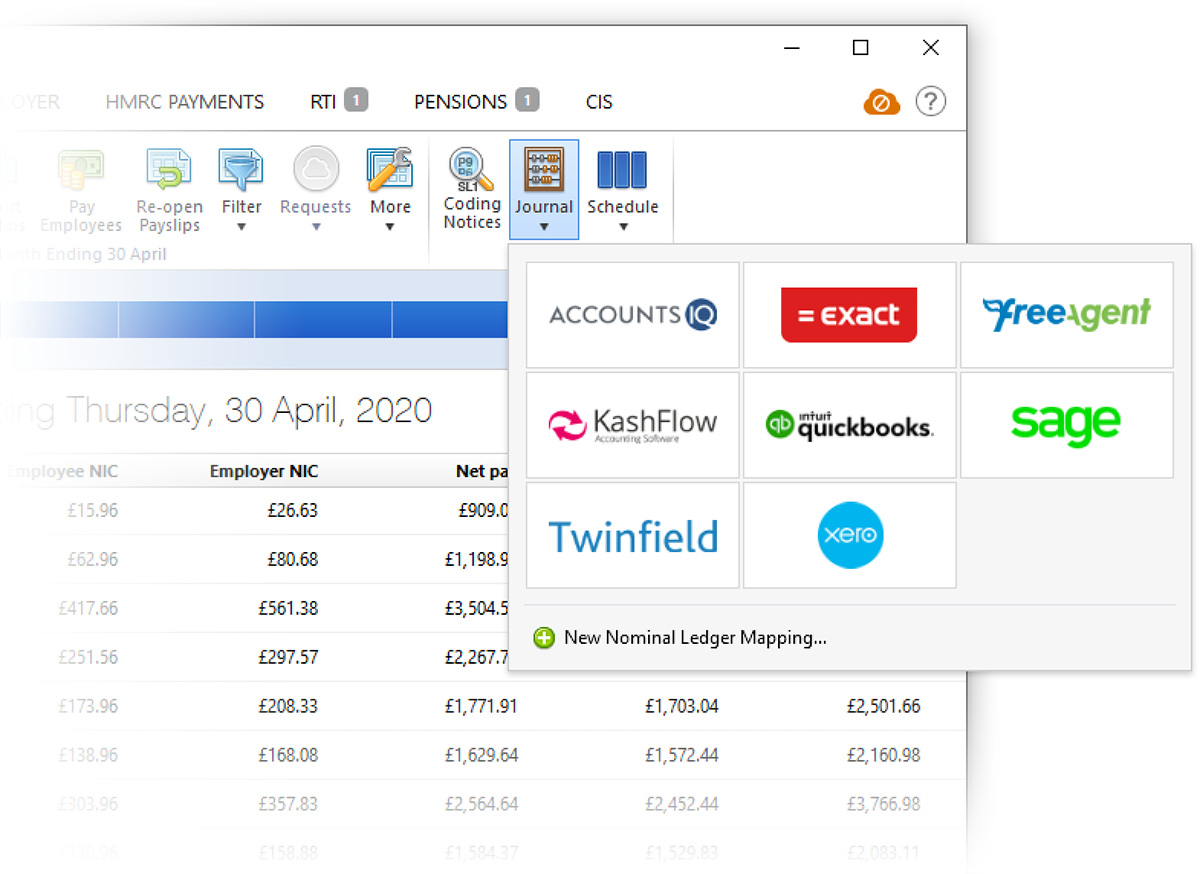In BrightPay, each payroll journal file is customised to the individual accounting software provider, with compatible files and built-in nominal ledger mapping. Essentially, this mapping tells the payroll where things get posted to in the accounting system.